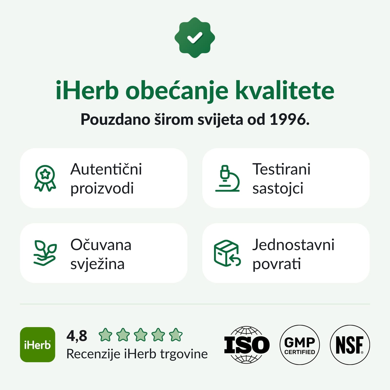 Iako tvrtka iHerb nastoji osigurati ispravnost slika i informacija o proizvodima, moguće je da neke promjene u proizvodnji na pakiranju i/ili sastojcima čekaju ažuriranje na našoj web stranici. Iako se artikli povremeno mogu slati u alternativnoj ambalaži, svježina je uvijek zajamčena. Preporučujemo da prije upotrebe pročitate etikete, upozorenja i upute za sve proizvode te da se ne oslanjate isključivo na informacije koje pruža platforma iHerb. Ova web stranica koristi strojni prijevod radi lakšeg korištenja platforme. iHerb ne jamči da su prijevodi potpuni ili bez pogrešaka i ne odgovara za eventualne pogreške ili propuste u prijevodu.